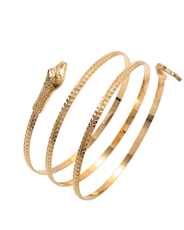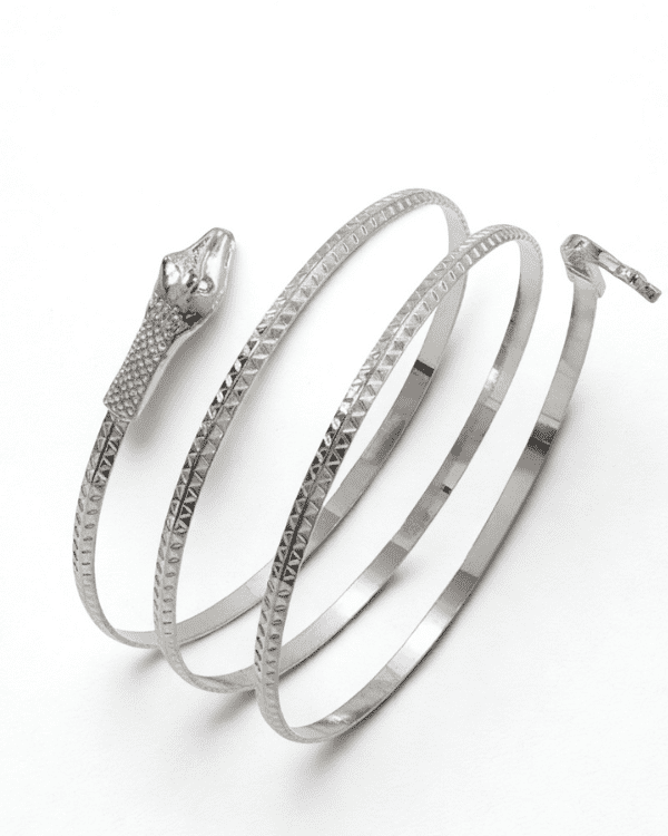 Inspired by the timeless symbolism of the serpent, this Serpent Bangle brings a touch of mystery, strength and feminine confidence to your everyday look. Designed with a carved snake head and a beautifully textured, wrap-around band, it adds instant personality and allure to your wrist.